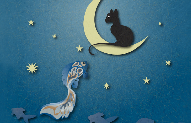 黒猫のランと魚の物語とヨガに、どんなつながりが生まれるのか。ランと魚のいる野原をのぞいてみましょう。