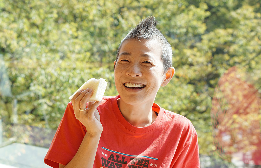 トップの写真は、高尾先生が休憩中に大好きな卵サンドを召し上がっているところです。この写真だけでも元気がもらえますね!
