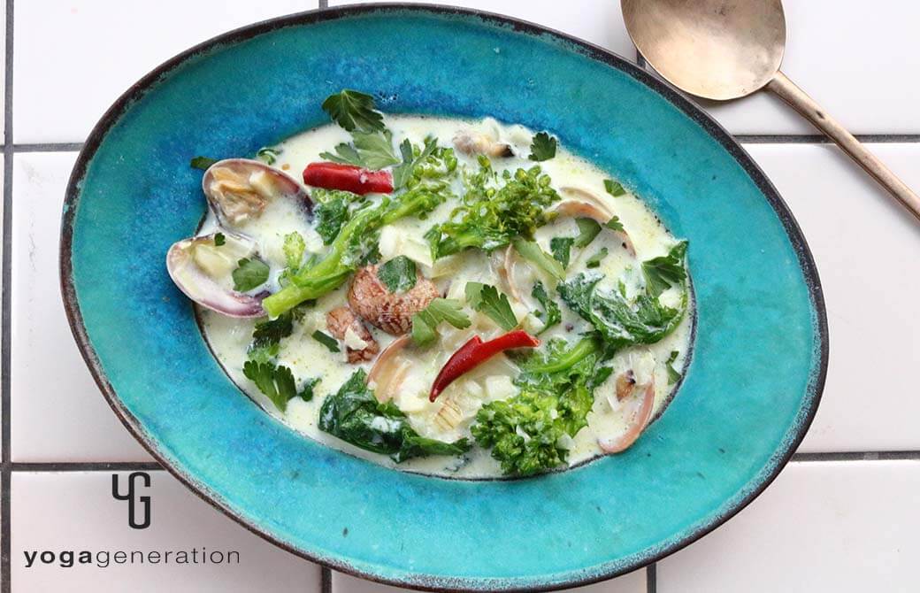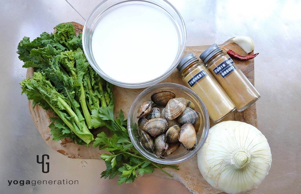 今回は、これからが旬のクラム(二枚貝)『アサリ』と旨みを合わせて、ミルキーなスープで楽しみます。そしてゆるベジレシピに欠かせないのは、やはりスパイス!