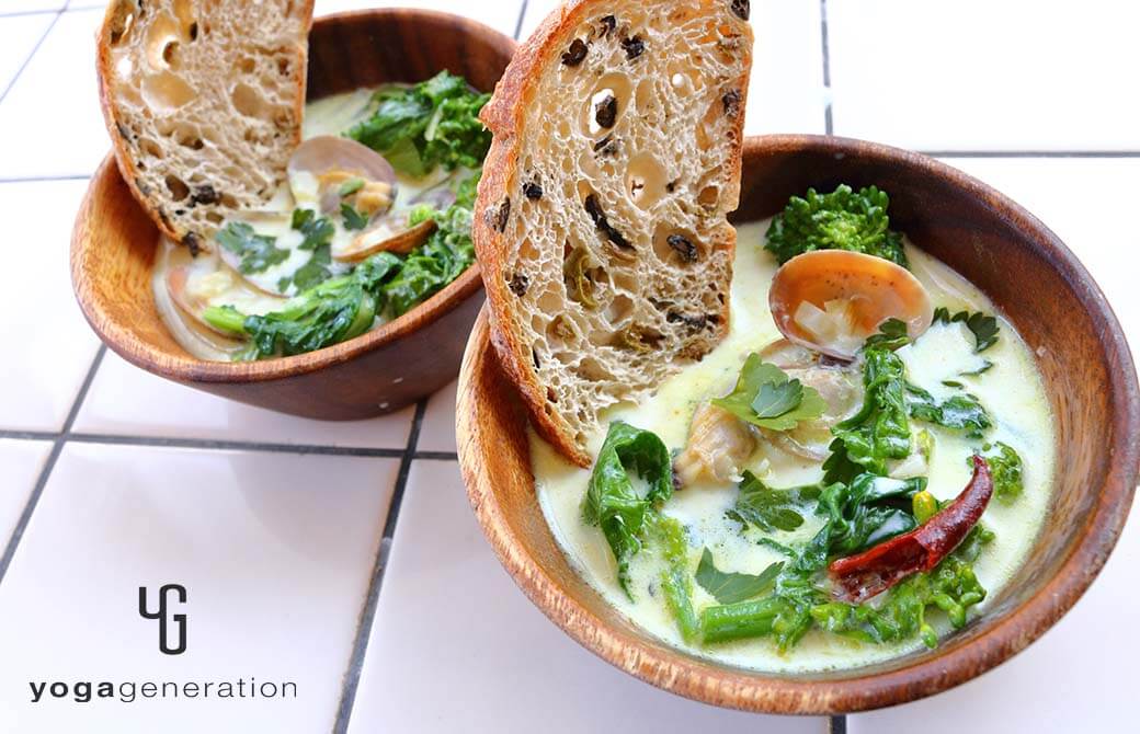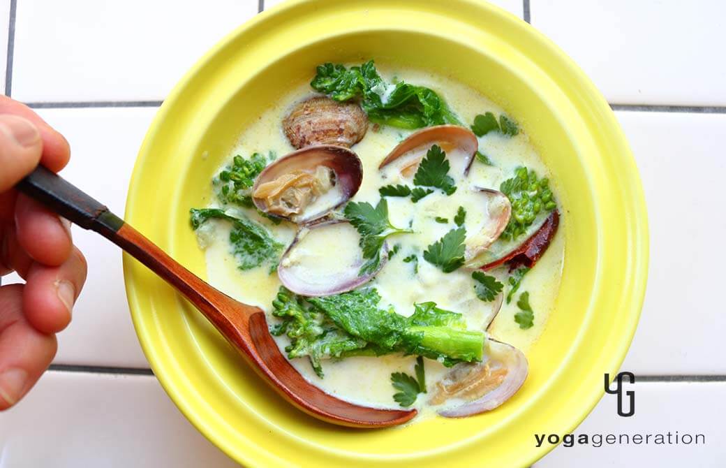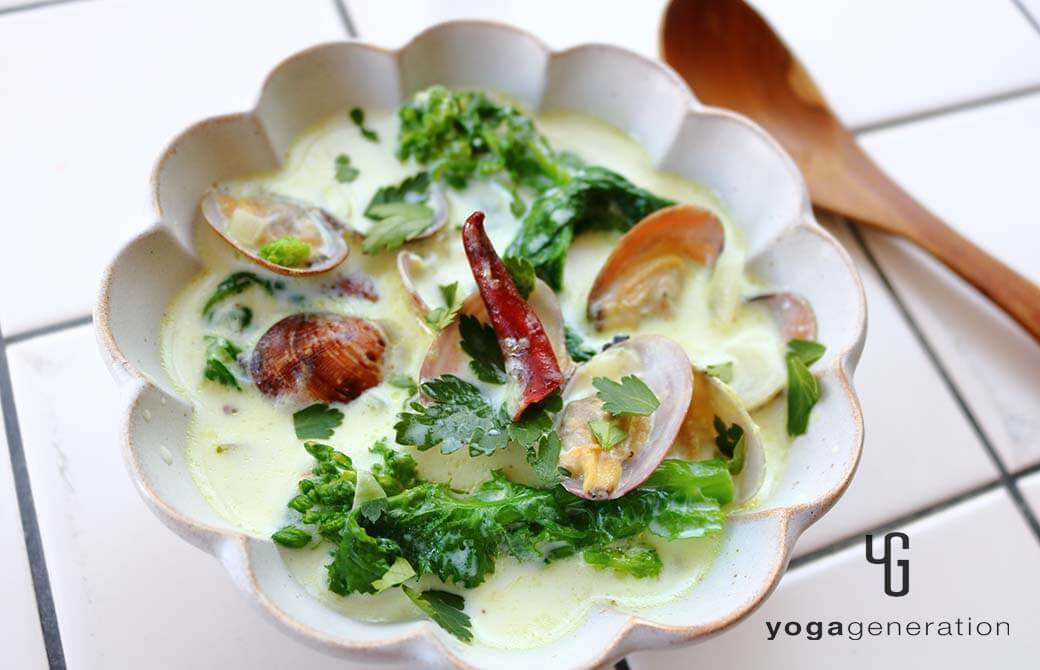 菜の花とアサリのスパイシーなミルクスープ
