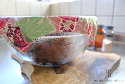 焼けたらすぐにボウルへ移してラップなどで密閉し、10分くらい置いて蒸らす。 -