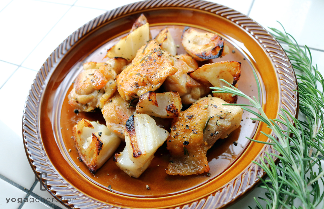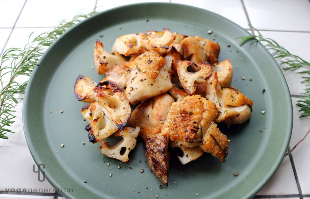ローズマリーとガーリックのハーモニーに、ジューシーな鶏肉の食感とシャキシャキなレンコンの歯ごたえを楽しんでくださいね♪