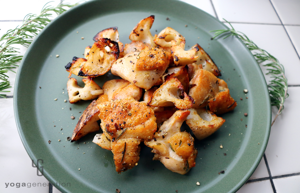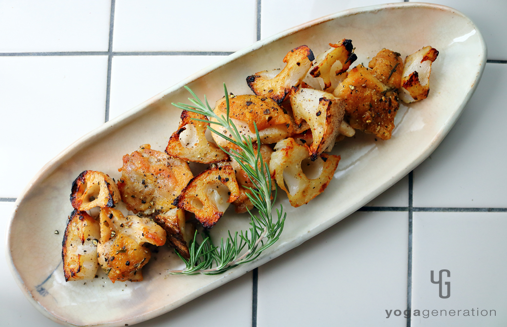 レンコンは多くのビタミンCを含み不溶性の食物繊維も豊富、これからが旬のレンコンを積極的に頂いていきましょう。今週はささっと出来る炒め物です。このレシピのコツは『中強火のまま強気でガンガン焼き続ける』こと!ローズマリーとガーリックの魅惑の香りにそそられて、作っているうちからワクワクすること間違い無しです♪