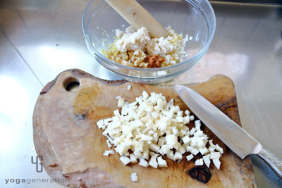 - レンコン(半分は擦りおろし、残りの半分は7〜8ミリ角切り)