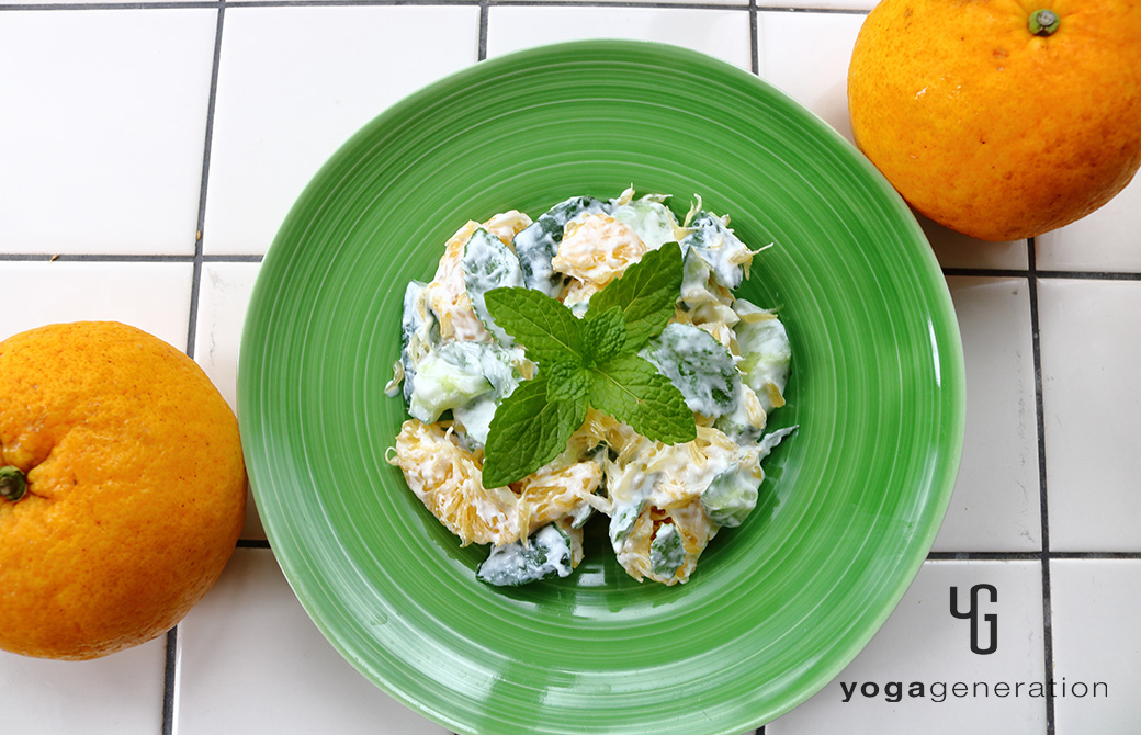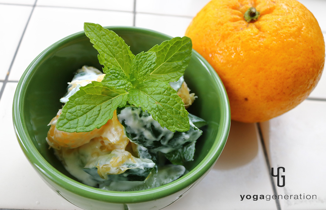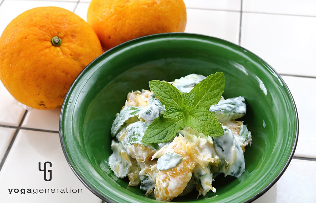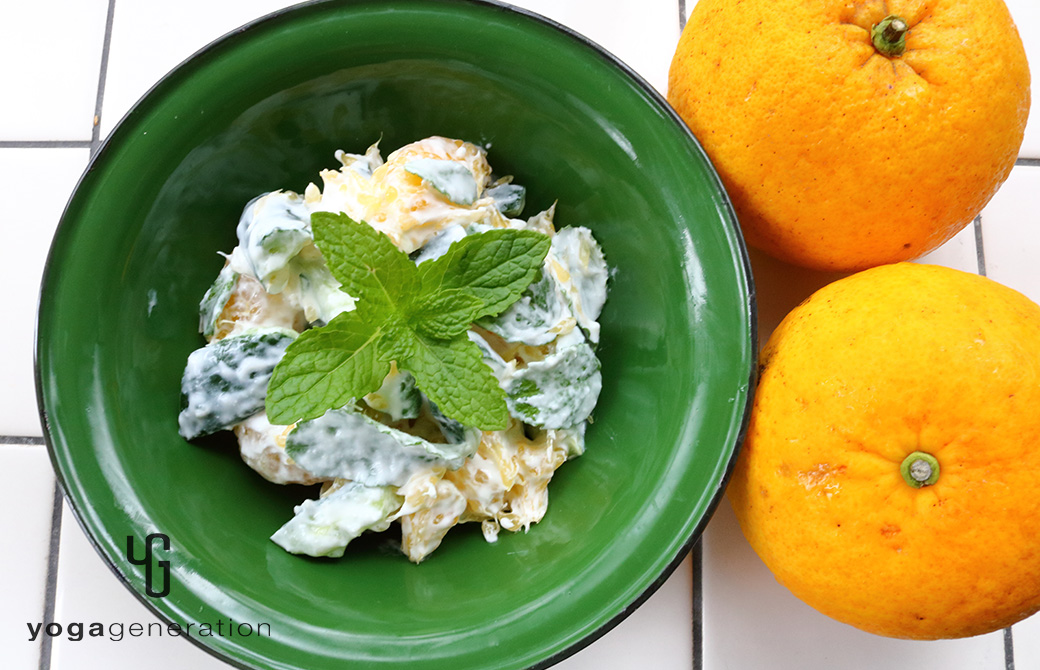 夏みかんを楽しむレシピ、今回は夏に向かう今の季節にぴったりのヨーグルトサラダ!ミントの爽やかさとニンニクのアクセントをプラス、隠し味にEVオリーブオイルも加えて、シンプルな塩味ながら旨味に奥行きが広がっています♪