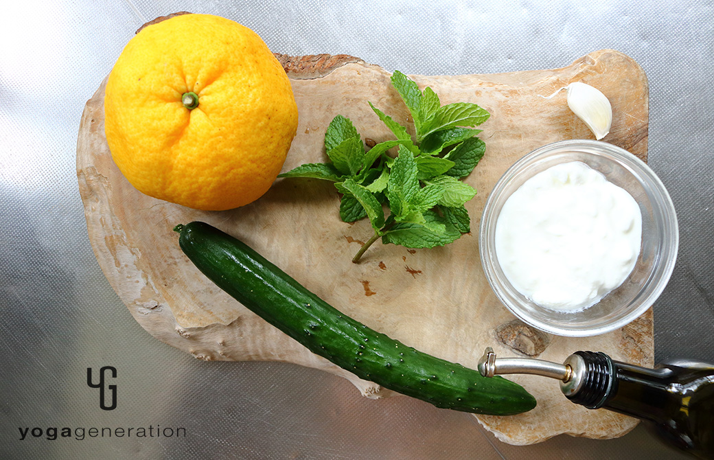 - キュウリは割り入れて不揃いな断面にすることでヨーグルトが絡まりやすくなります。