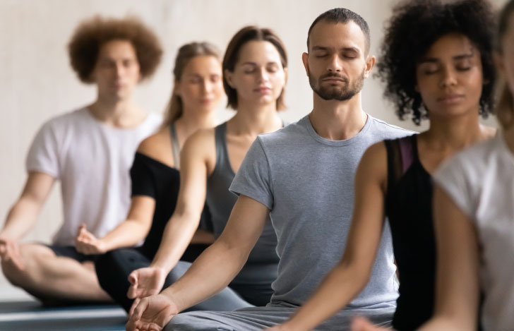 ヨガクラスの内容は、アーサナとプラーナヤーマによるハタヨガと、仰向けになりリラックスした状態で行う10分間のマインドフルネス瞑想です。