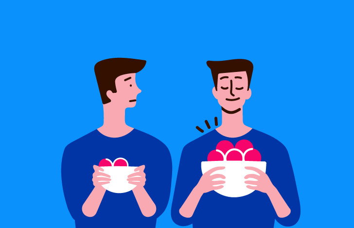 例えば、同じようにバレンタインに綺麗な女性からチョコレートを貰ったとしても、同僚の1人の男性にだけ何倍もする高級チョコレートをあげていると知ってしまったら、自分がチョコレートを貰った事実が変わらなくても一気に幸福が消えてしまいます。