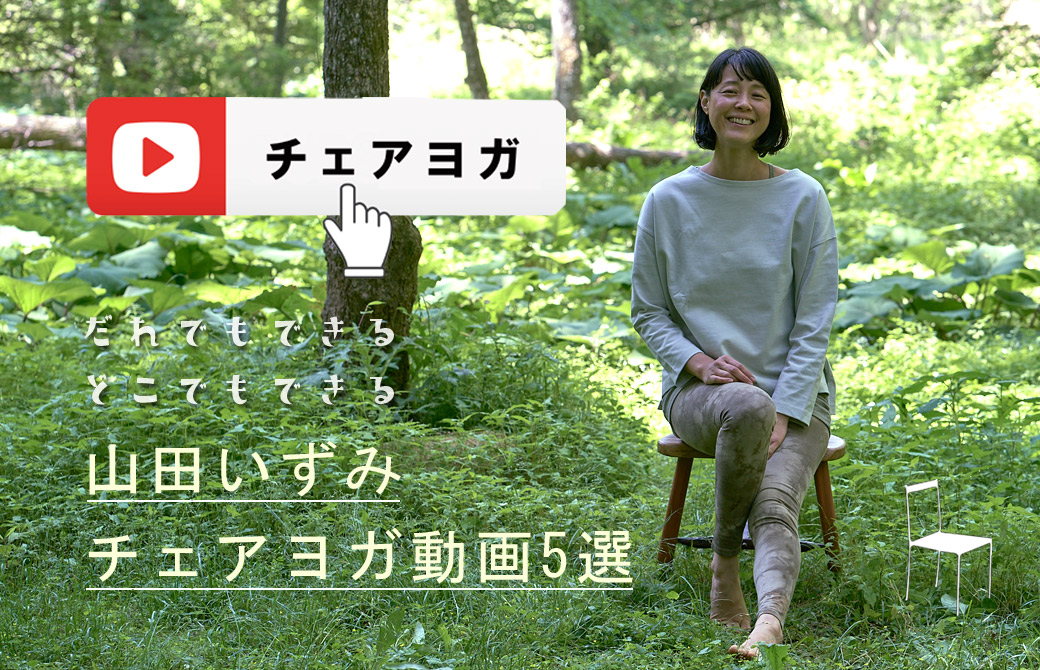 八ヶ岳の森からお届けするチェアヨガは、肩こりケアのプログラム。イスがなくても、自然の中、座ることができる岩の上などでもできそうですね!