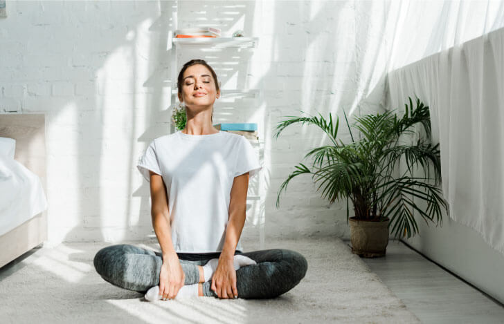 無理に痛いアーサナをキープする必要はもちろんありません。ただ、自分の呼吸を感じて、目を閉じてリラックスするだけでも、「今」を感じることができます。