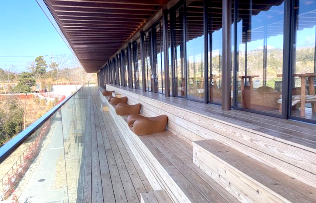そして、ヨガ&瞑想は2Fにある全長100メートルのウッドデッキで行われます。山肌に聳え立つ、このデッキからの眺めは圧巻!