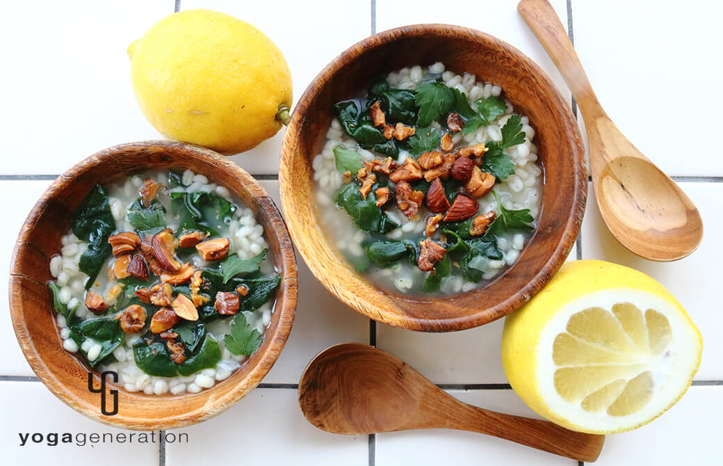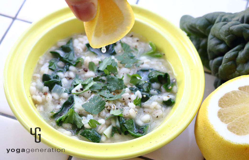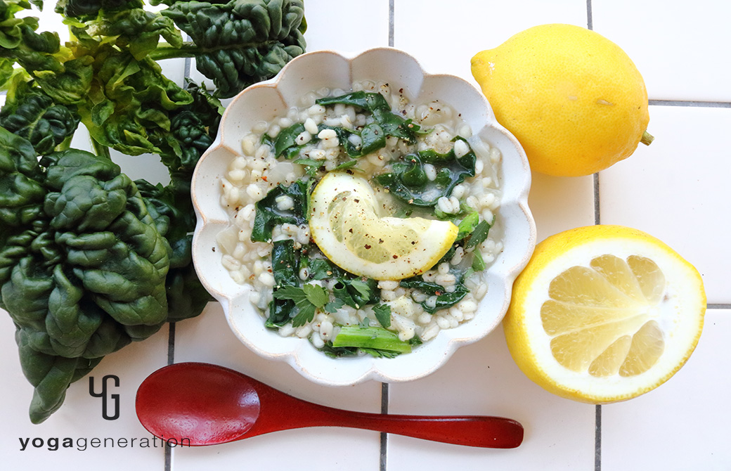 今月のピックアップ食材『ホウレン草』、今回はそのギュッと凝縮した旬の旨味を、レモンの酸味と楽しむお粥。モチ麦のプチプチ食感が、『食』へのワクワク感をアップしますよ!