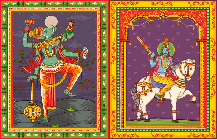 10のアヴァターラは、世界に降臨する順番ごとに最初は魚や動物から始まり、人間、聖者と、少しずつ高い精神をもった存在になっていきます。