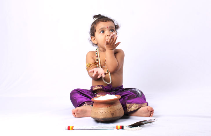 赤ん坊の時から悪魔を退治するほどの力を持っていたクリシュナ神ですが、聡明で力強い側面と、いたずらっ子でワンパク坊主の側面を両方持ち合わせています。