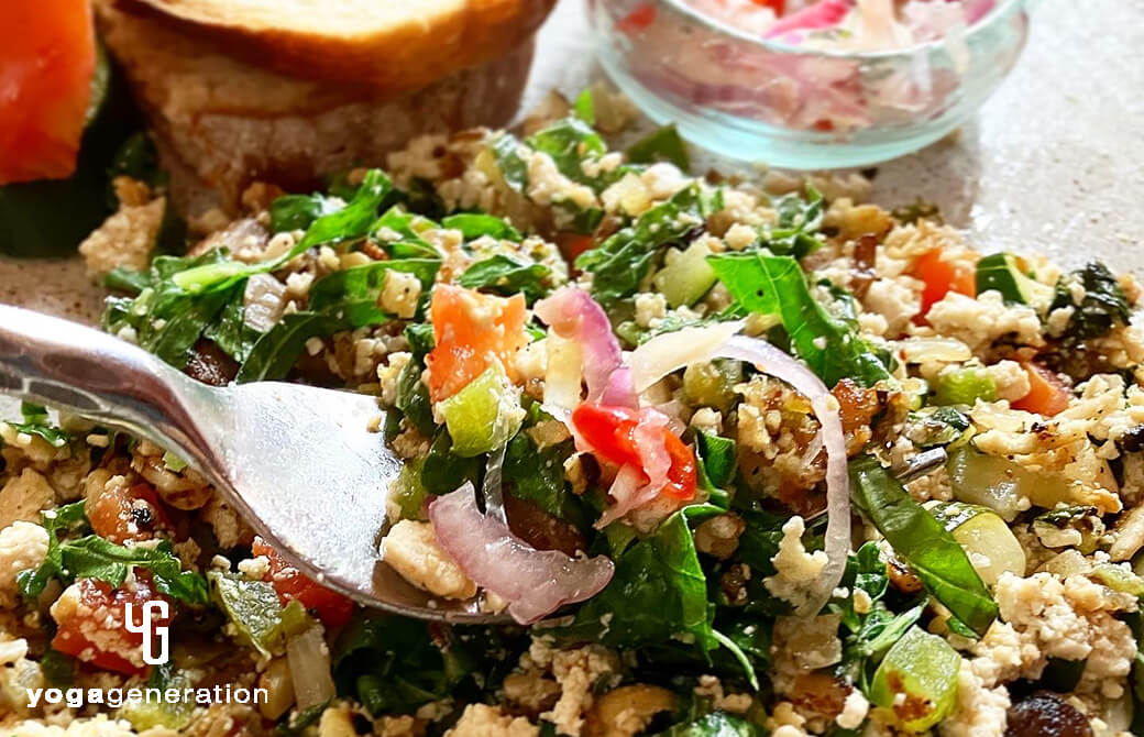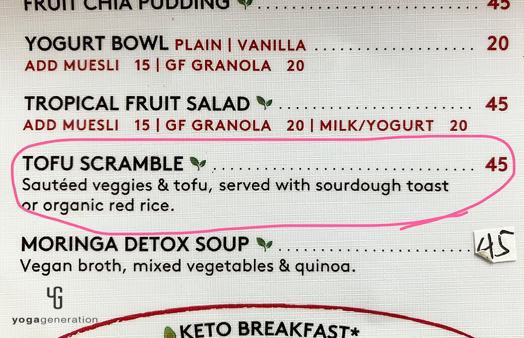 朝ごはんは『TOFU SCRAMBLE』という、