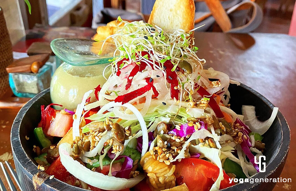 まずは、ヨガスタジオが多く点在している山側ウブドという街のヘルシーなカフェ。