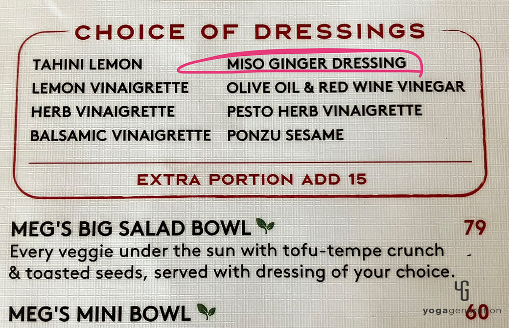 このサラダはドレッシングも、様々な種類から選べますが、一番人気は『MISO ginger(しょうがみそドレッシング)』とのこと。