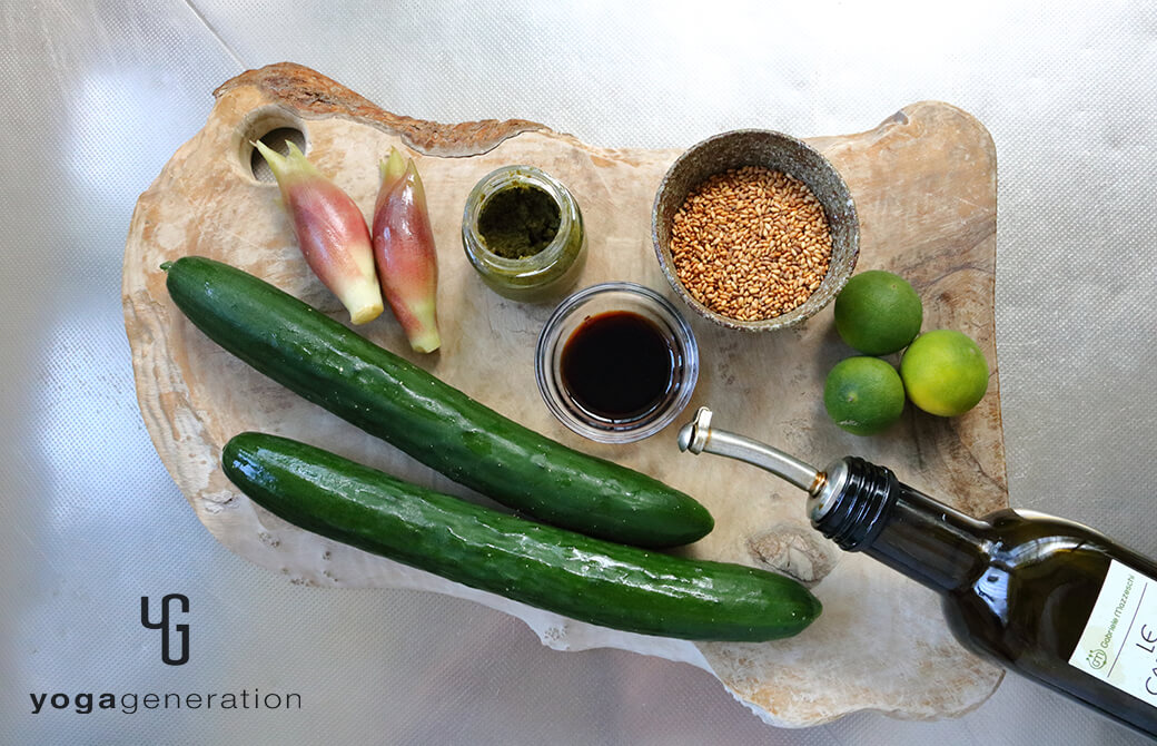 キュウリとミョウガのたっぷり金ゴマ柚子胡椒