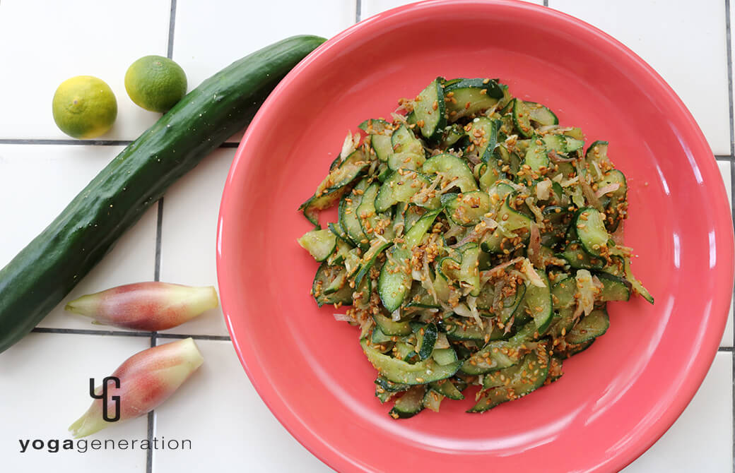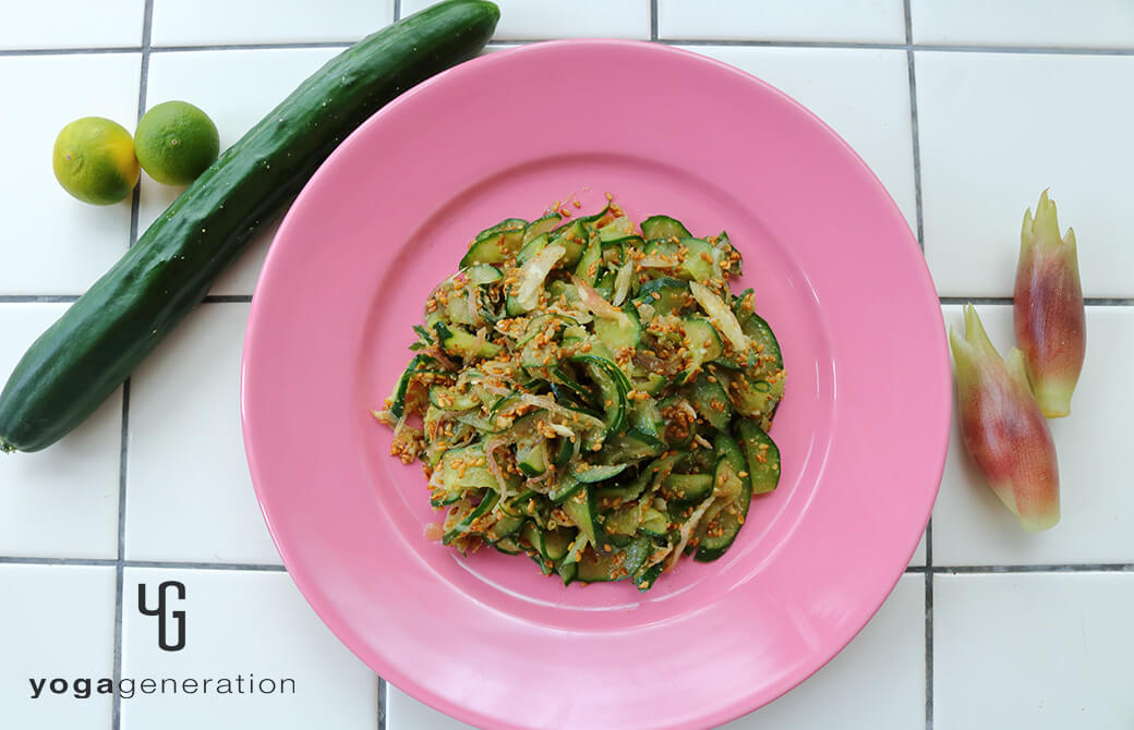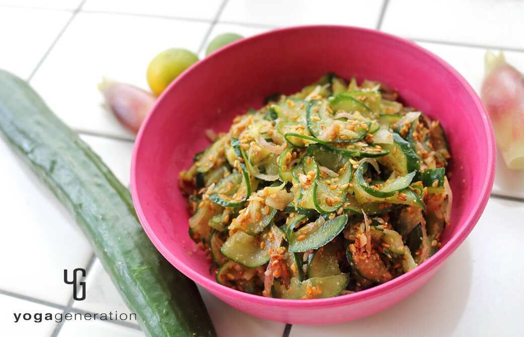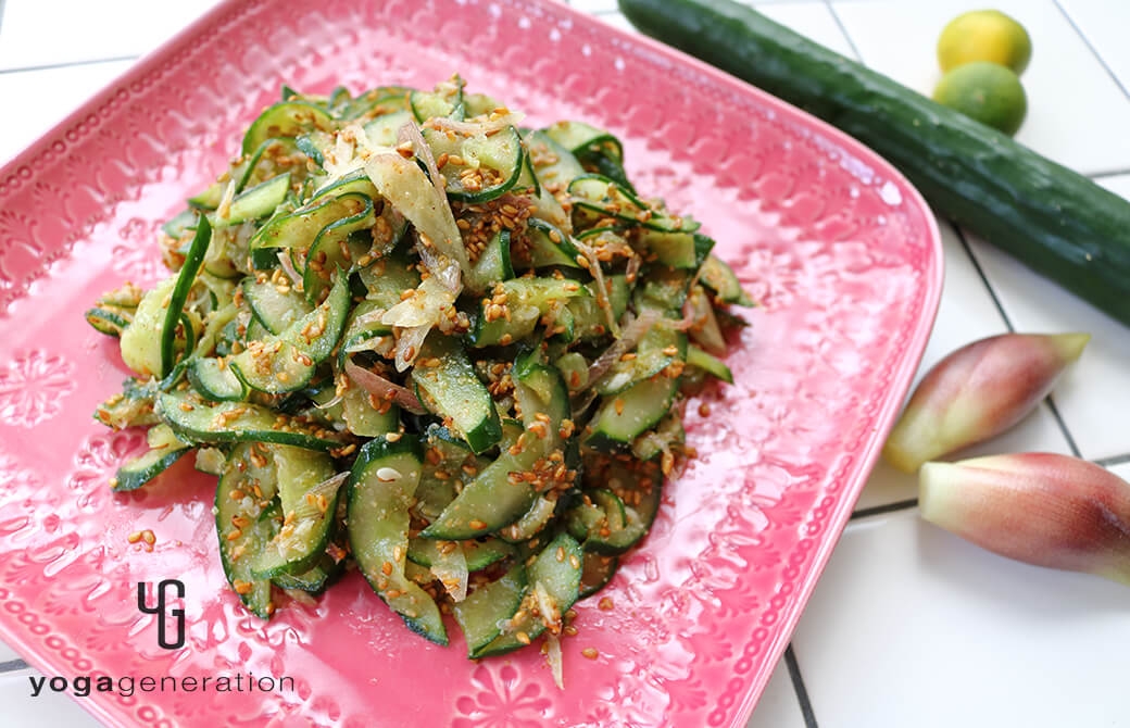 今回は旬のみずみずしいキュウリでお箸が止まらない美味しさの和え物。金ゴマと柑橘をたっぷり加えるのがオススメです。