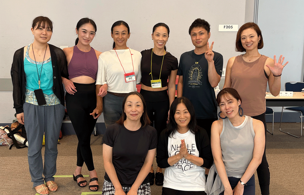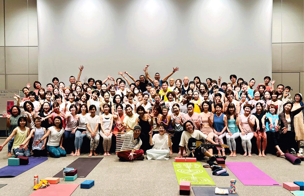 今回、全5クラスを担当したケン先生。参加者全員で唱えるチャンティングは圧巻でした。エネルギーが溢れる空間。その場にいるだけで沢山のエネルギーが集まるのも現場開催ならでは。最後は、全員で集合写真。人のパワーを感じる瞬間でした。