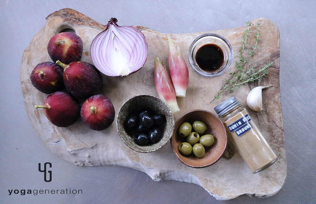 ミョウガとイチジク、オリーブのバルサミコマリネ