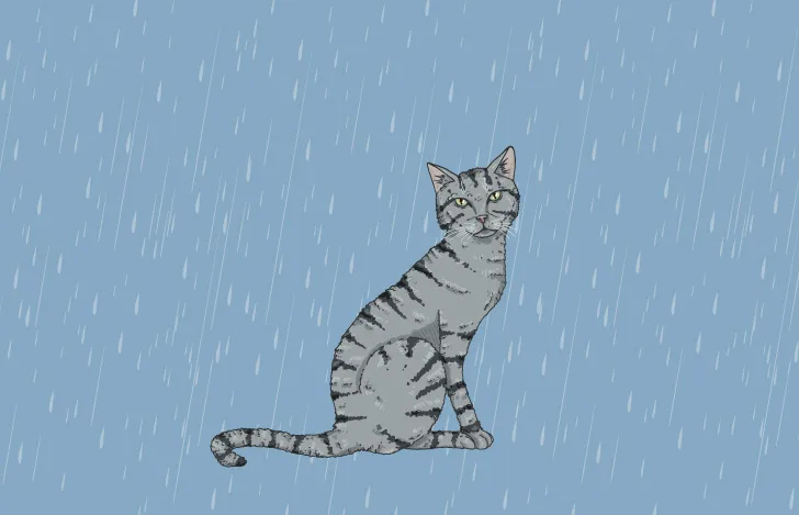 そののらねこが、びしょぬれだったので、エルマーは、ねこに、自分のうちに来ませんか? と誘います。