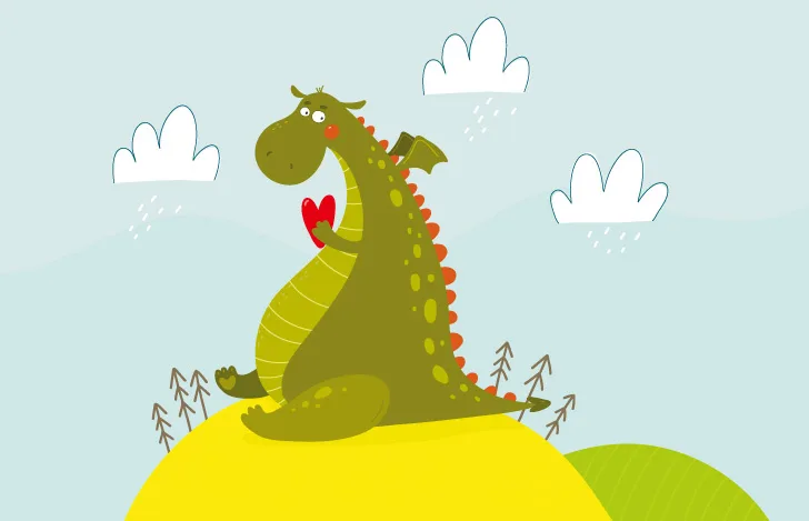 そんな時、雲の上から、どうぶつ島に1ぴきのりゅうの赤ん坊が落っこちてきたのです。