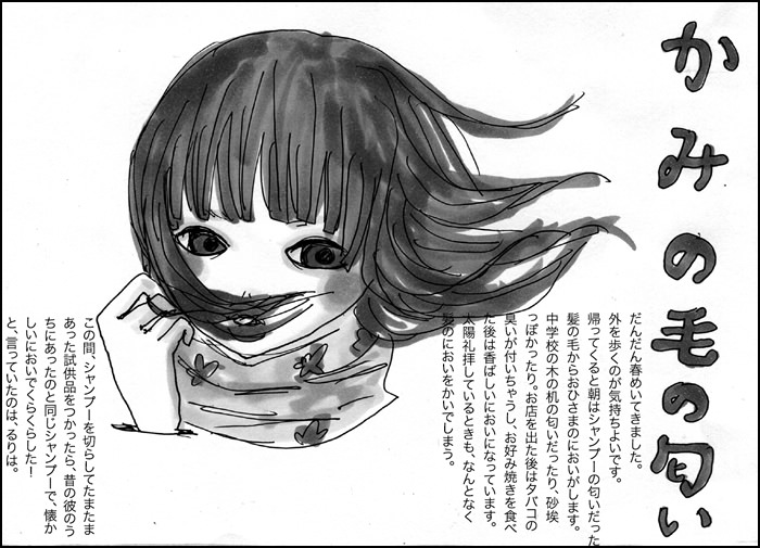 ヨガ漫画 ヒトコマナモ:Vol.21『かみの毛の匂い』 2010年3月16日 ヒトコマナモ:Vol.21『かみの毛の匂い』 前の記事ヒトコマナモ:Vol.18『美人の眉間のしわについて。』 次の記事ヒトコマナモ:Vol.20『首の悩み。』 椿かをり 201 記事 記事一覧