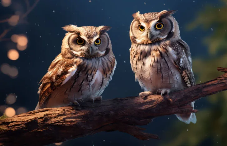 崩れかかった石の壁の中に、とても幸せな2羽のふくろう夫婦が暮らしています。