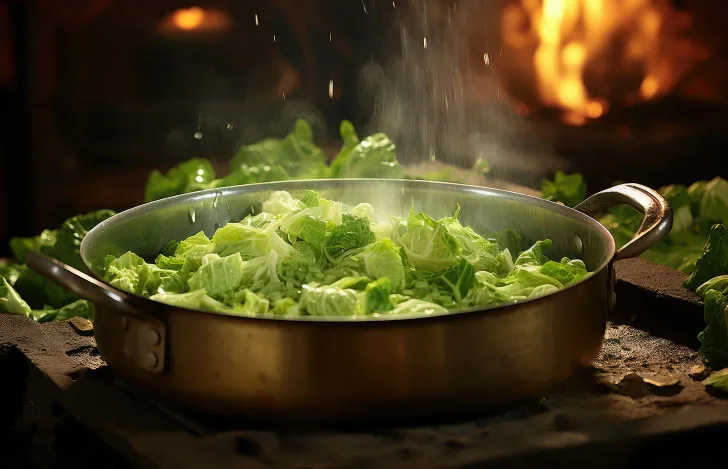 奥さんは何か食べれば元気が出て、素晴らしい願いごとを思いつくかもしれないと思い、残っていたキャベツで貧弱なスープをこしらえます。
