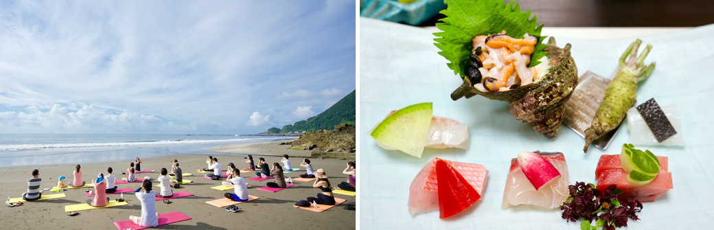 - 「友人に誘われて初めて参加しました。普段からヨガをしていますが、海岸で波の音を聞き、風を感じながらヨガができて気持ち良かったです。莉緒さんの優しい声と、和やかな雰囲気で夏の良い思い出になりました。」(女性/今井荘にて初参加)