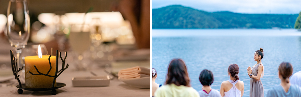 今年アゴーラ・ホテルアライアンス様の素敵なホテルを巡りながらヨガイベントを共にさせて頂き感じたのは、佐賀の雄大さ、伊豆の落ち着いた日本の海の風景、長野の野尻湖を包むそのままの森の美しさ、そして、それをご参加いただいた皆々様と一緒に見て、綺麗な空気を一緒に吸い込み感動した時間。