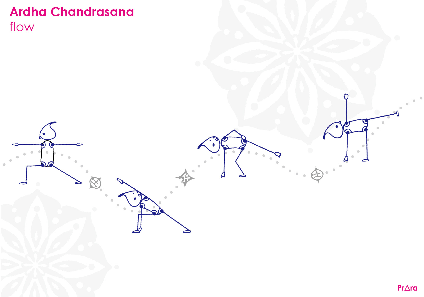 例えば、パールシュバコナーサナのように身体を横に開いたアーサナから、そのまま前脚に体重を乗せて半月のポーズへ移行することも慣れてくると難なくこなせるようになっていきます。