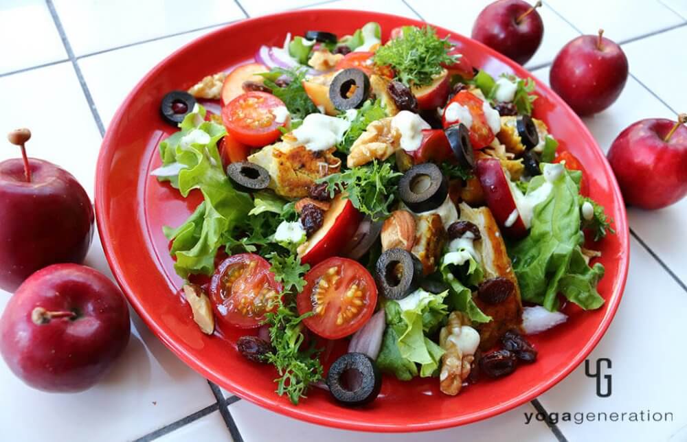 彩り華やかな、おうちごはん♪スパイシーチキンとフレッシュなリンゴのサラダ