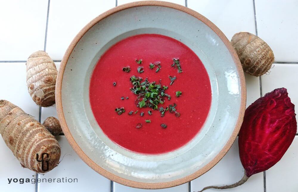 季節の変わり目に自身を労わる♪サトイモとビーツのクリーミーなお味噌汁