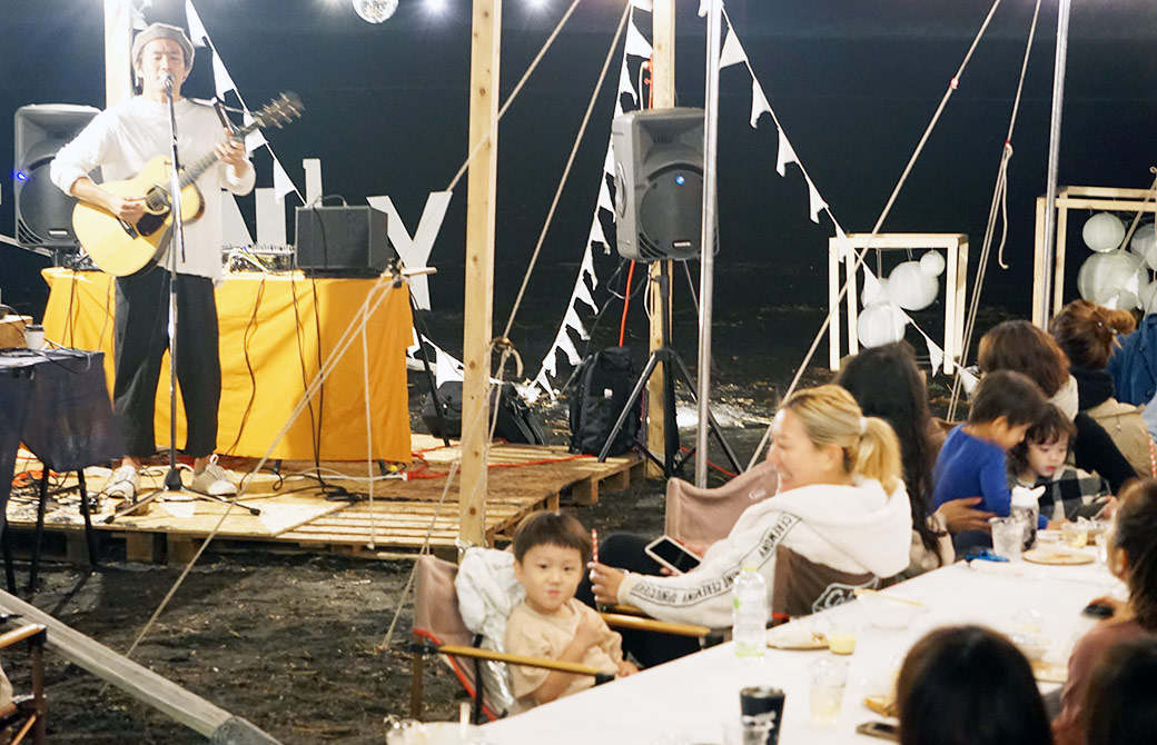 夜、ビーチに特設されたテーブルで夕食が準備され、そこではMARTERさんのライブが行われていました。そのテーブルにいた人が、誰もスマホを手にしていませんでした。私にとってはそれが心から感動したことの1つです。