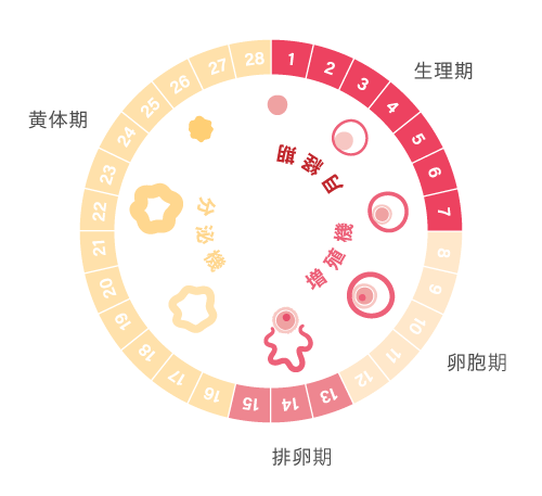 月経第1日から次の月経開始の前日までを「月経周期」といいます。