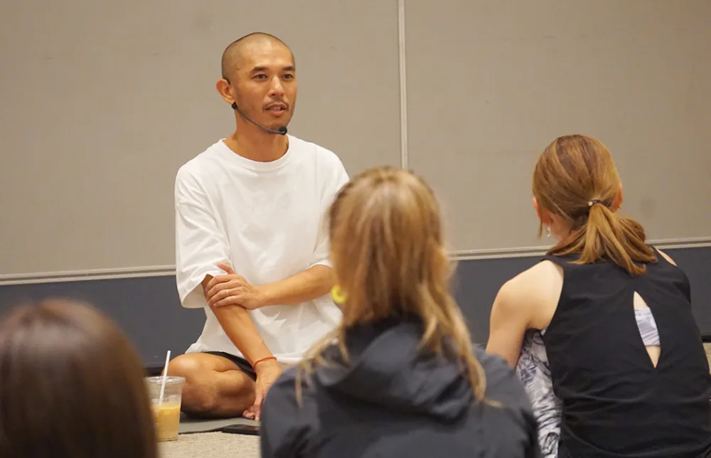 同じ空間にいるだけで、清らかな気持ちになれて、元気をもらえるゴウ先生。今年のヨガフェスタでは、ヨガの本質に触れる内容のクラスを2本担当。
